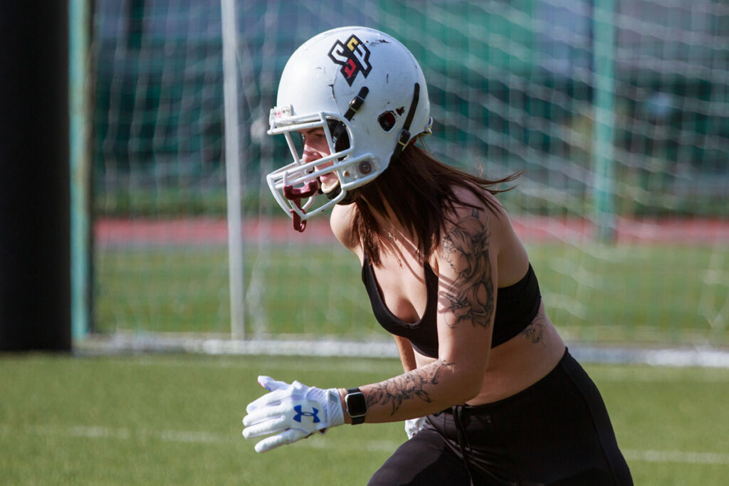 Даша начала играть в американский футбол в Воронеже, но теперь переехала в Москву по работе и перешла из «Могучих уток» в «Единороги». Фото: Кристина Бражникова | Гласная