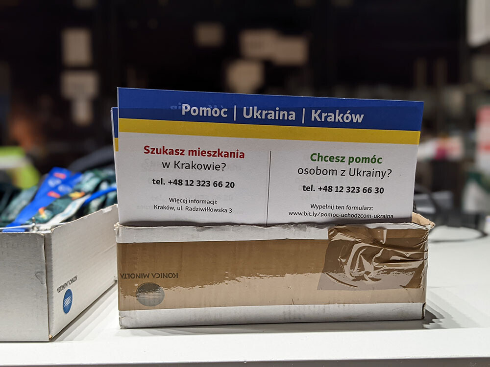 В польском сегменте фейсбука популярен мем: Йозеф Пилсудский с портрета поздравляет Владимира Путина с тем, что тот «смог объединить даже поляков». Центр, где я помогаю, — часть коалиции «Открытый Краков», созданной более чем полсотней местных НКО и городской администрацией для координации помощи беженцам. Тут они получают правовую и медицинскую помощь, информацию, одежду, лекарства, находят жилье. В нашем офисе среди прочего есть списки мест, где в Кракове украинцам можно пообедать бесплатно, листовки с инструкциями для тех, кто ищет работу, список польских организаций, куда можно обратиться, чтобы сделать аборт, криминализированный в Польше, или в случае торговли людьми.