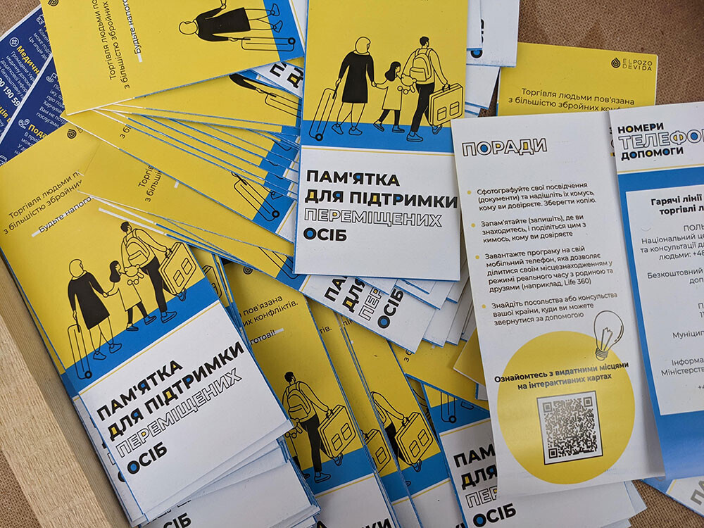 Зоны ожидания и отдыха развели по разным помещениям и разделили их по городам и странам. Теперь люди, отправляющиеся в Чехию, ждут транспорт в одном месте, во Францию — в другом, те, кто еще не определился, — в третьем. Сделали просторную информационную стойку, наладили питание и медицинскую помощь. Повсюду плакаты и листовки с информацией о прибытии и легализации, номерами телефонов разных служб, инструкциями, как вести себя в ситуации угрозы торговли людьми.