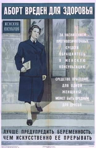 «Нам нужны люди. Аборты, которые уничтожают жизнь, неприемлемы в нашей стране. Советская женщина имеет одинаковые права с мужчиной, но это не освобождает ее от великого и почетного долга, который возложила на нее природа: она мать, она дает жизнь. И это определенно не личное дело, но дело большой социальной важности», — писал партийный деятель и революционер Арон Сольц.